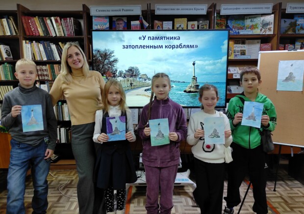 В детской библиотеке-филиале №5 прошел исторический час «У памятника затопленным кораблям.» Ребята узнали о событиях, предшествовавших установлению памятника: он был освящён увековечиванию памяти семи кораблей, затопленных в бухте Севастополя, для предотвращения прорыва в город превосходящего по силам англо-французского флота.