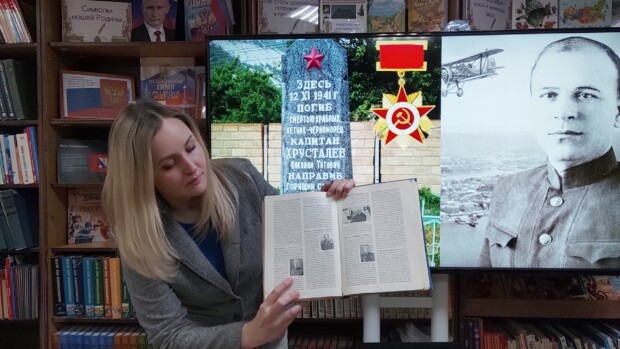 В нашей библиотеке прошёл час истории, посвящённый памяти советского лётчика, капитана Николая Титовича Хрусталёва.