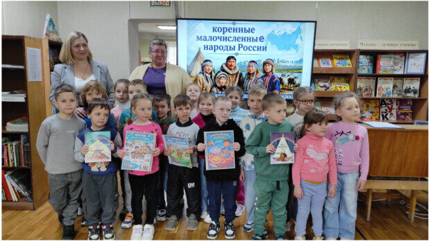 В рамках акции «Народы России — одна семья» в детской библиотеке-филиале №5 прошёл час этнографии «Малые народы большой России». Ребята познакомились с тремя удивительными культурами Севера: ханты, манси и чукчи.