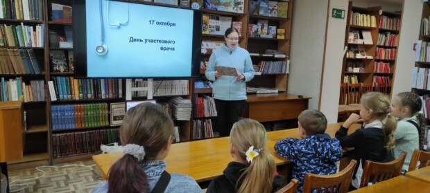 К дню участкового терапевта в детской библиотеке-филиале №5 прошел час здоровья «Врач — важная профессия». Юные читатели вспомнили нескольких книжных докторов и познакомись с биографией некоторых реально существовавших медиков. А затем попытались разыграть сценку по мотивам сказки К. Чуковского «Доктор Айболит».