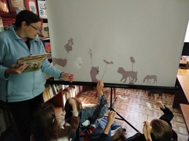На этот раз юные артисты нашего теневого театра учились работать со сценарием. Ребята добавили в сюжет несколько новых персонажей и придумали им забавные реплики.