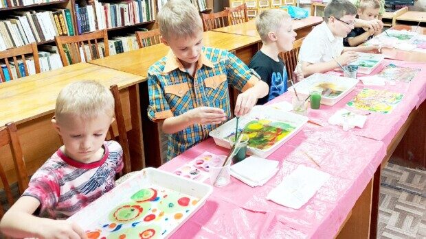 Читатели библиотеки-филиала №5 попробовали создать рисунки в технике «эбру». У каждого получился свой уникальный, яркий, необычный рисунок.