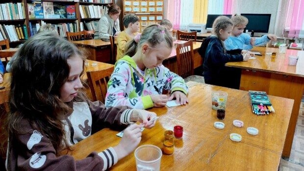 Читатели познакомились с книгами, рассказывающими о русских художниках, которые посвящали свои произведения осени. Вдохновившись увиденным, ребята создали свои личные осенние пейзажи, которые они создали в технике «пуантилизм». Это такое направление в живописи, основанное на методе формирования рисунка с помощью маленьких цветных точек. Маленькие точки тебята сделали с помощью ватных палочек.