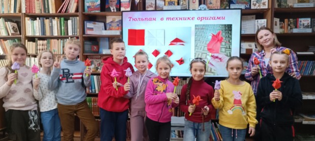 Завершилось мероприятие творческой работой: мальчишки и девчонки изготовили красочные весенние тюльпаны в технике оригами.