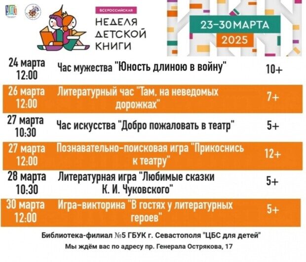 Стартовала Всероссийская Неделя детской книги, а это значит, что мы ждём вас на интересные мероприятия в библиотеке-филиале №5!