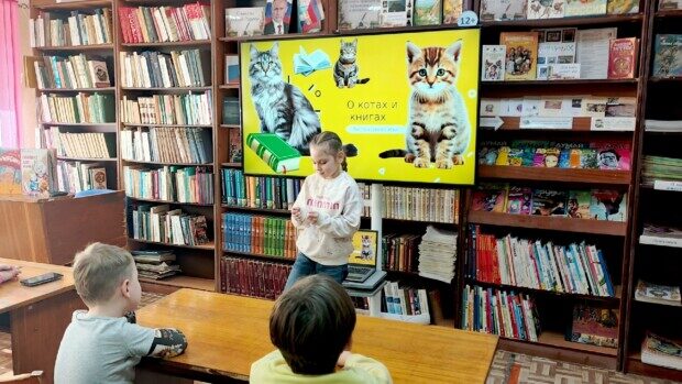 В конце мероприятия читатели узнали о том, какие книги о кошках можно взять в библиотеке.