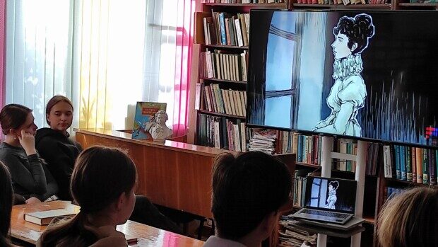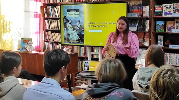 Для читателей библиотеки-филиала №5 прошёл литературный час «Онегин — взгляд через призму времени», посвящённый этому произведению. Ребята узнали историю написания романа, то, как его приняли современнники. Также совместно с библиотекарем читатели разобрали первую строфу произведения. Узнали значение фразы «самых честных правил», узнали почему раньше благородных девиц в России редко называли именем Татьяна и много других интересных фактов.
