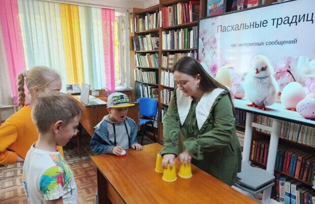 Для читателей библиотеки-филиала №5 в рамках акции выходного дня «Во!Круг книг!» прошло мероприятие, посвящённое светлому празднику Пасхи. Ребята узнали о традициях празднования этого дня в разные времена, а также поиграли в игры. Завершилось мероприятие созданием пасхальной открытки.