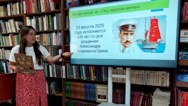 Для читателей библиотеки прошёл литературный час «Под парусом мечты», посвящённый писателю. Ребята узнали о творческом пути Александра Степановича, о его жизни в Крыму.