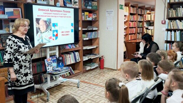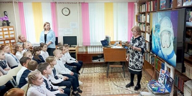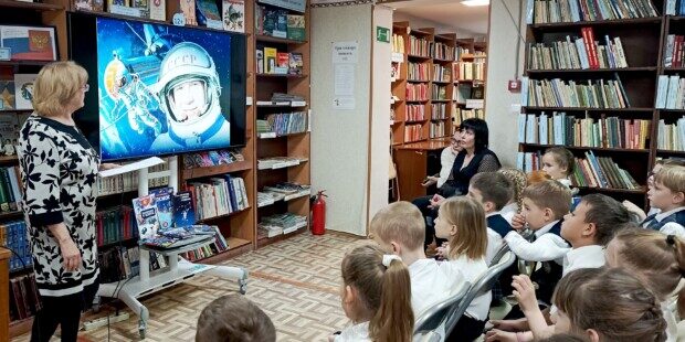 В детской библиотеке — филиале №5 в рамках проекта «Во славу России» прошёл час интересных сообщений «Преодолеть земное притяжение».