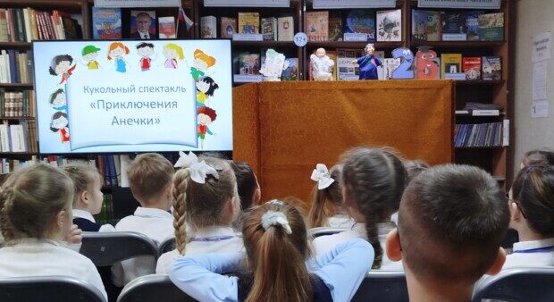 Букварь, в свою очередь, пожелал ребятам интересного путешествия в мир книг и подарил ребятам настоящую сказку — кукольный спектакль » Приключения первоклассницы Анечки».