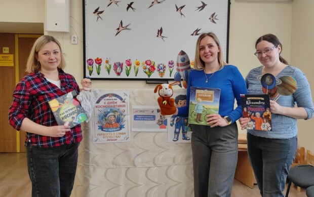 🚀️ Ребята познакомились с книгами о космосе, которые есть в нашей библиотеке и посмотрели кукольный спектакль «Кнопка-космонавт».