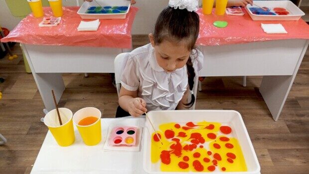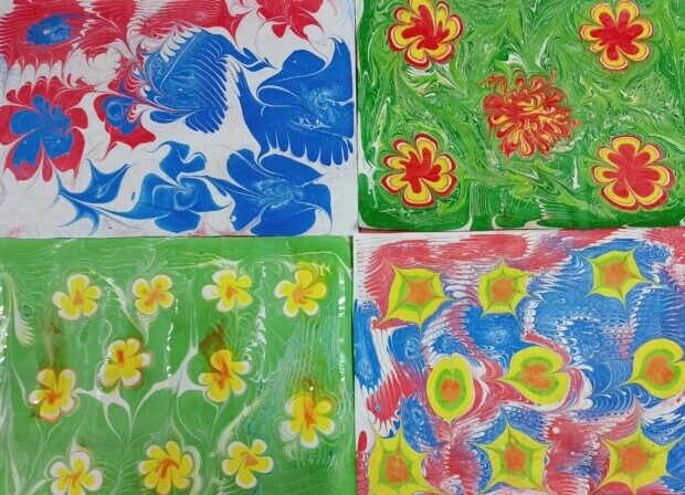 Есть такая интересная техника рисования, которая называется «эбру». Метод заключается в нанесении красок на специально подготовленный раствор с последующим переводом полученного рисунка на бумагу.