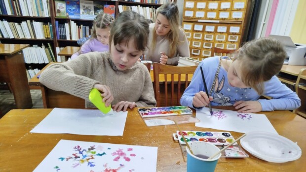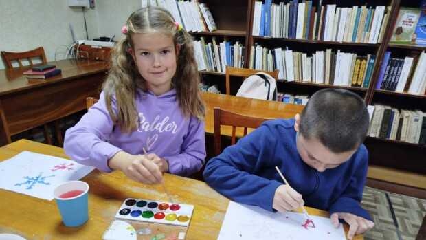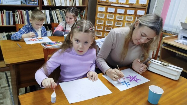 Ребята познакомились с книгой Сергея Альтшулера «Почему снег скрипит под ногами» и вслух прочитали некоторые ее главы. Узнали, чем снеговик отличается от снежной бабы и зачем ему ведро, отчего в Антарктиде бывает розовый снег и зачем японцы роют тоннели в сугробах. Обсудили исконно русские снежные традиции, поверья и приметы. А затем рисовали снежинки с помощью поваренной соли и акварели.