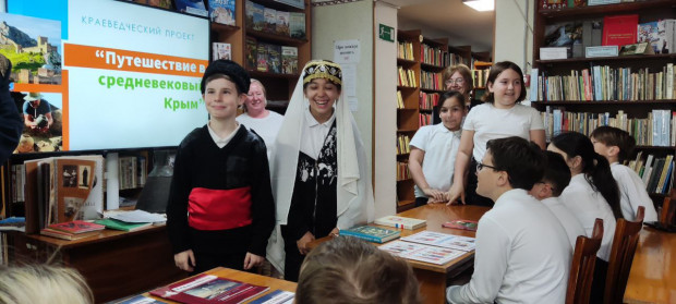 В рамках реализации краеведческого проекта «Путешествие в средневековый Крым», в детской библиотеке-филиале №5 прошла встреча читателей с Баккалом Евгением Григорьевичем и Беловой Ириной Николаевной — представителями Севастопольского национально-культурного общества караимов «Фидан».