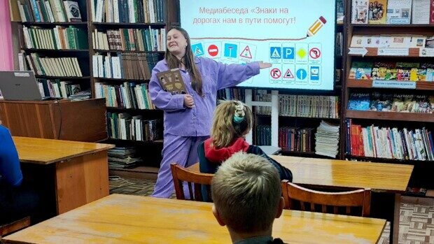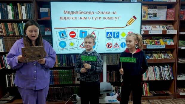 Для читателей детской библиотеки-филиал №5 прошла медиабеседа «Знаки на дорогах нам в пути помогут».
