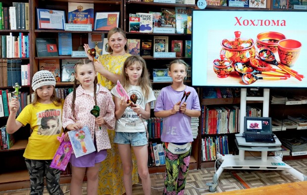 В детской библиотеке-филиале №5 прошёл час творчества «Золотые росписи ремёсел.»